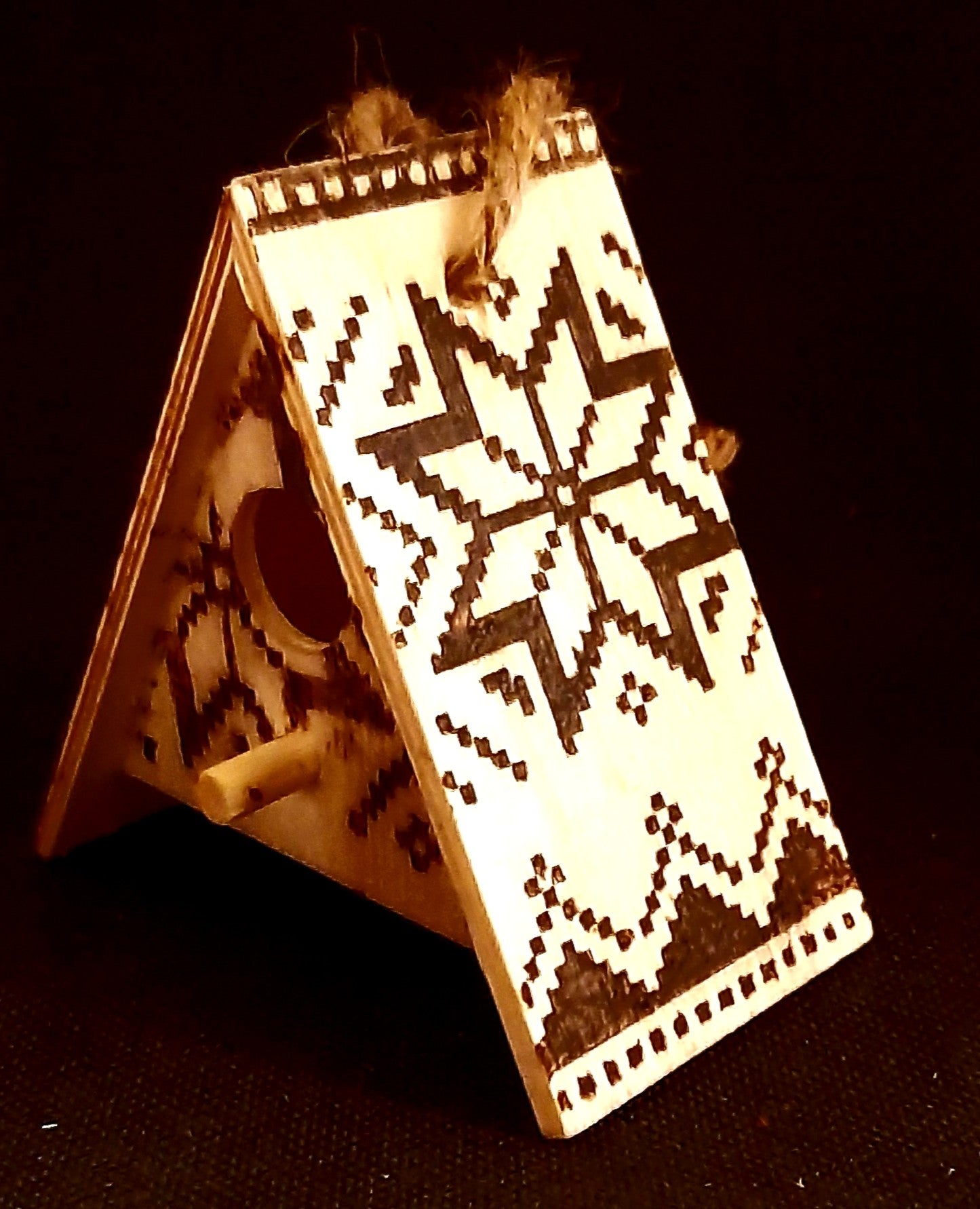 Mini-vogelhuisje van hout, met daarop een kerstpatroon gebrand. Dit vogelhuisje kun je ter decoratie in de kerstboom hangen, toevoegen aan je kerststukje, als raamdecoratie enz. De mogelijkheden zijn eindeloos.