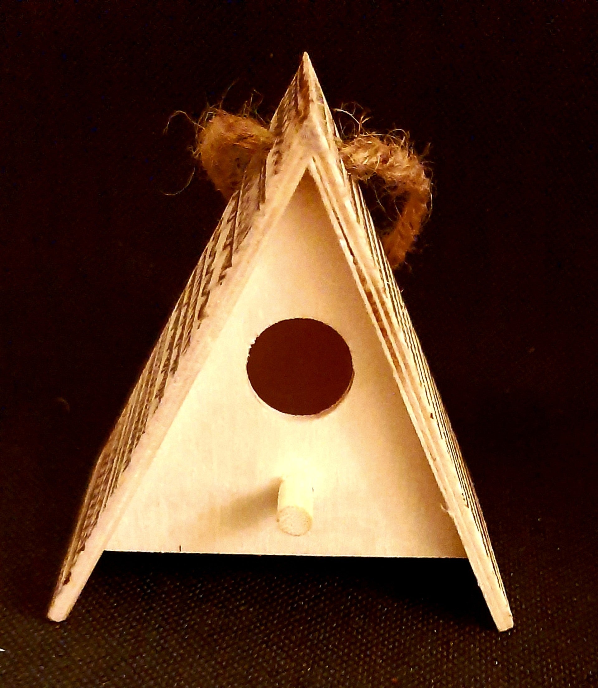 Mini-vogelhuisje van hout, met daarop een kerstpatroon gebrand. Dit vogelhuisje kun je ter decoratie in de kerstboom hangen, toevoegen aan je kerststukje, als raamdecoratie enz. De mogelijkheden zijn eindeloos.