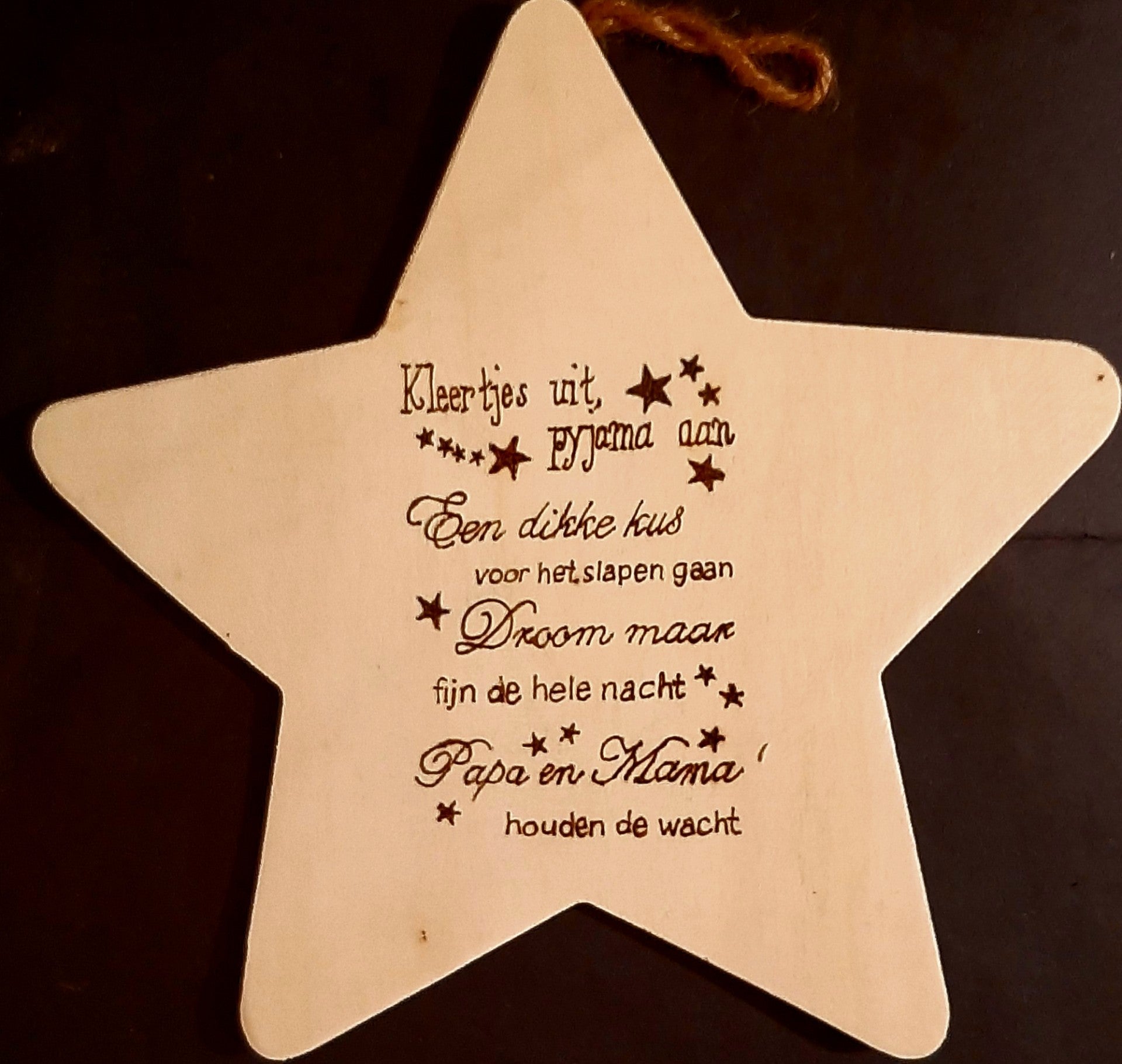 Leuk tekstbord van hout voor de allerkleinsten met daarop een toepasselijke tekst gebrand.