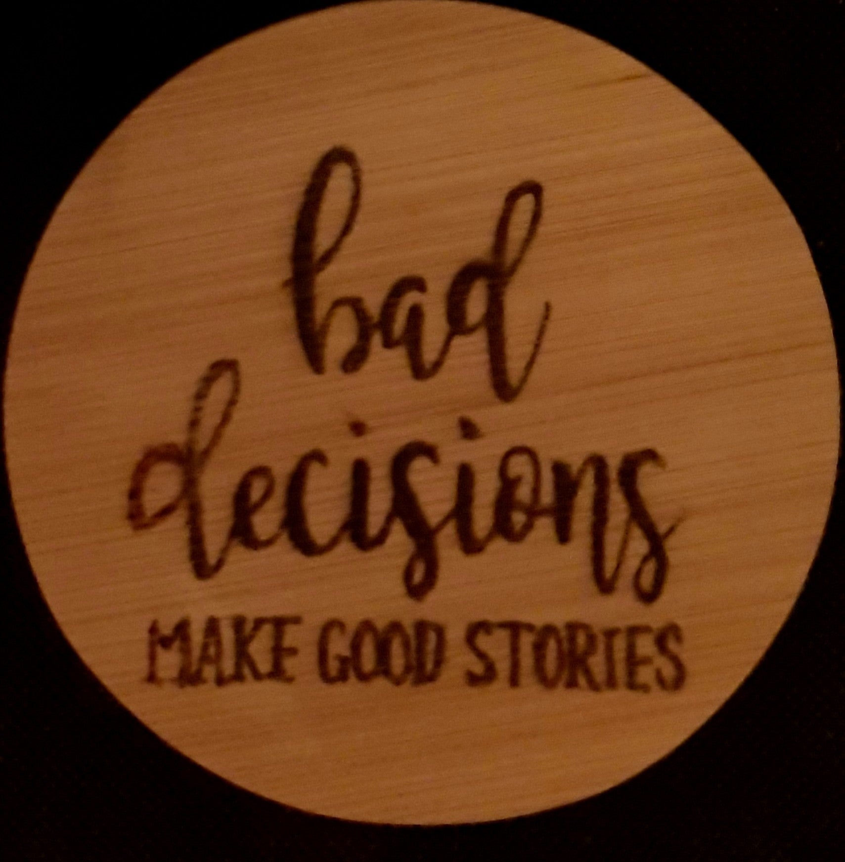 Onderzetter van bamboehout, met daarop een grappige bijpassende tekst en/of afbeelding gebrand.