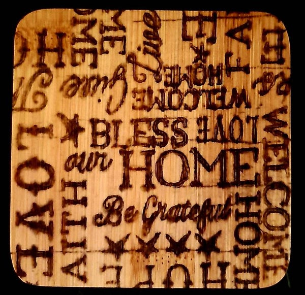 Leuk metalen blikje met een losse bamboehouten deksel. Op de deksel is een grafisch patroon gebrand.