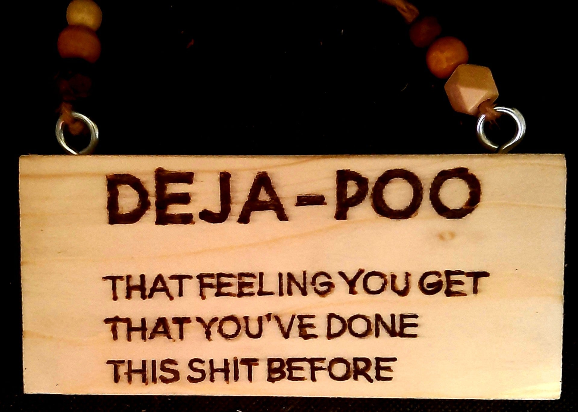 Grappig wc-bordje van hout met daarop een grappige toepasselijke afbeelding en/of tekst gebrand. Het bordje is voorzien van een ophangtouwtje