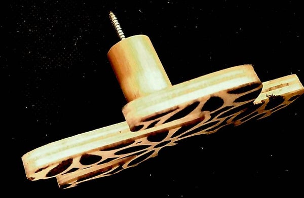 Ophanghaak van hout, in de vorm van een cactus, met daarop een bloemenpatroon gebrand.