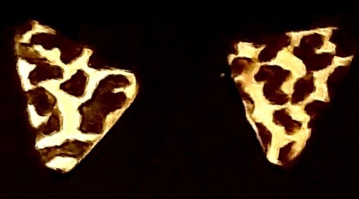 Unieke oorstekers van hout, waarop een grafisch patroon is gebrand.