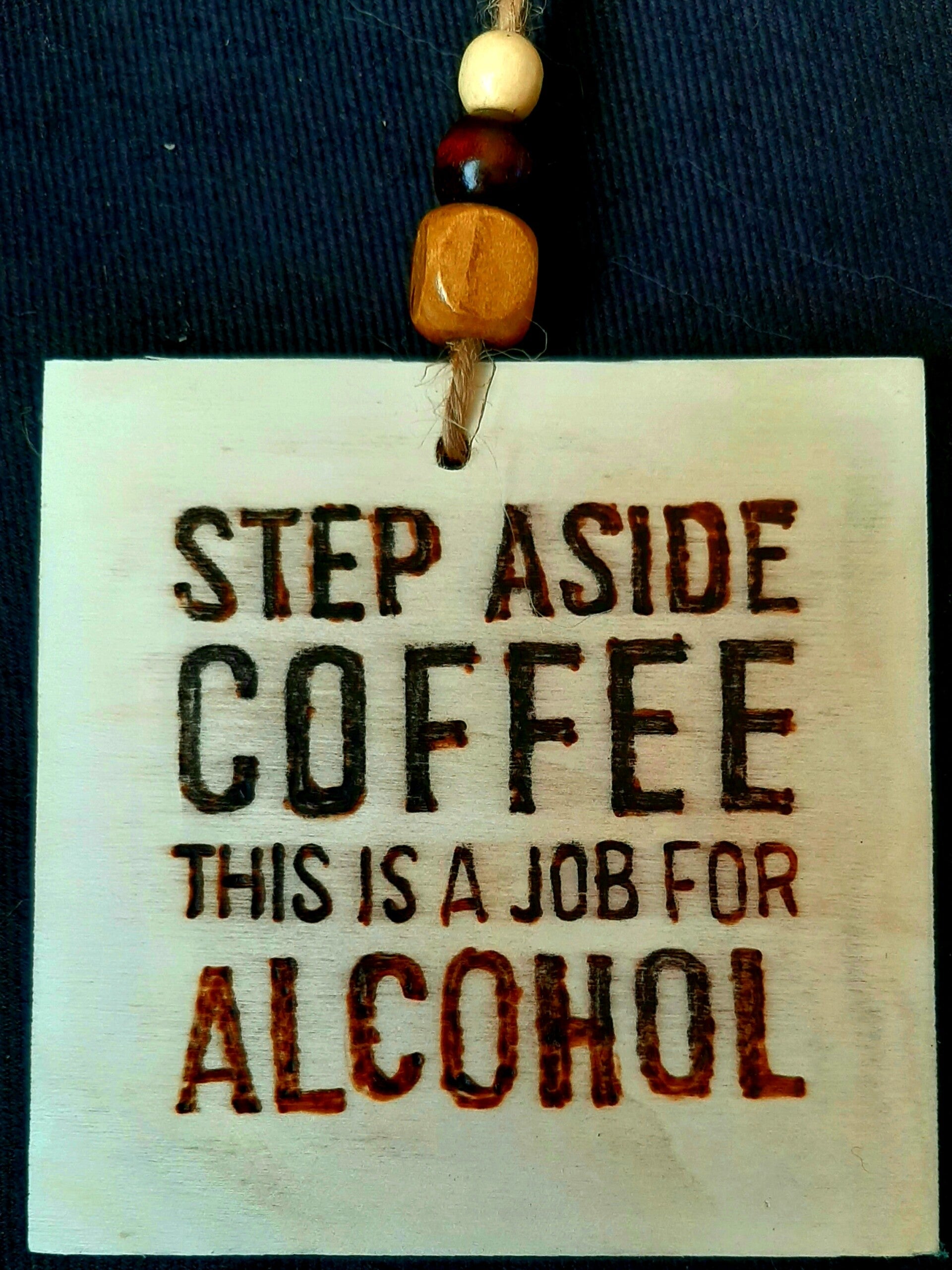 Grappig tekstbordje van hout met daarop een grappige afbeelding en/of tekst gebrand. Het bordje is voorzien van een ophangtouwtje