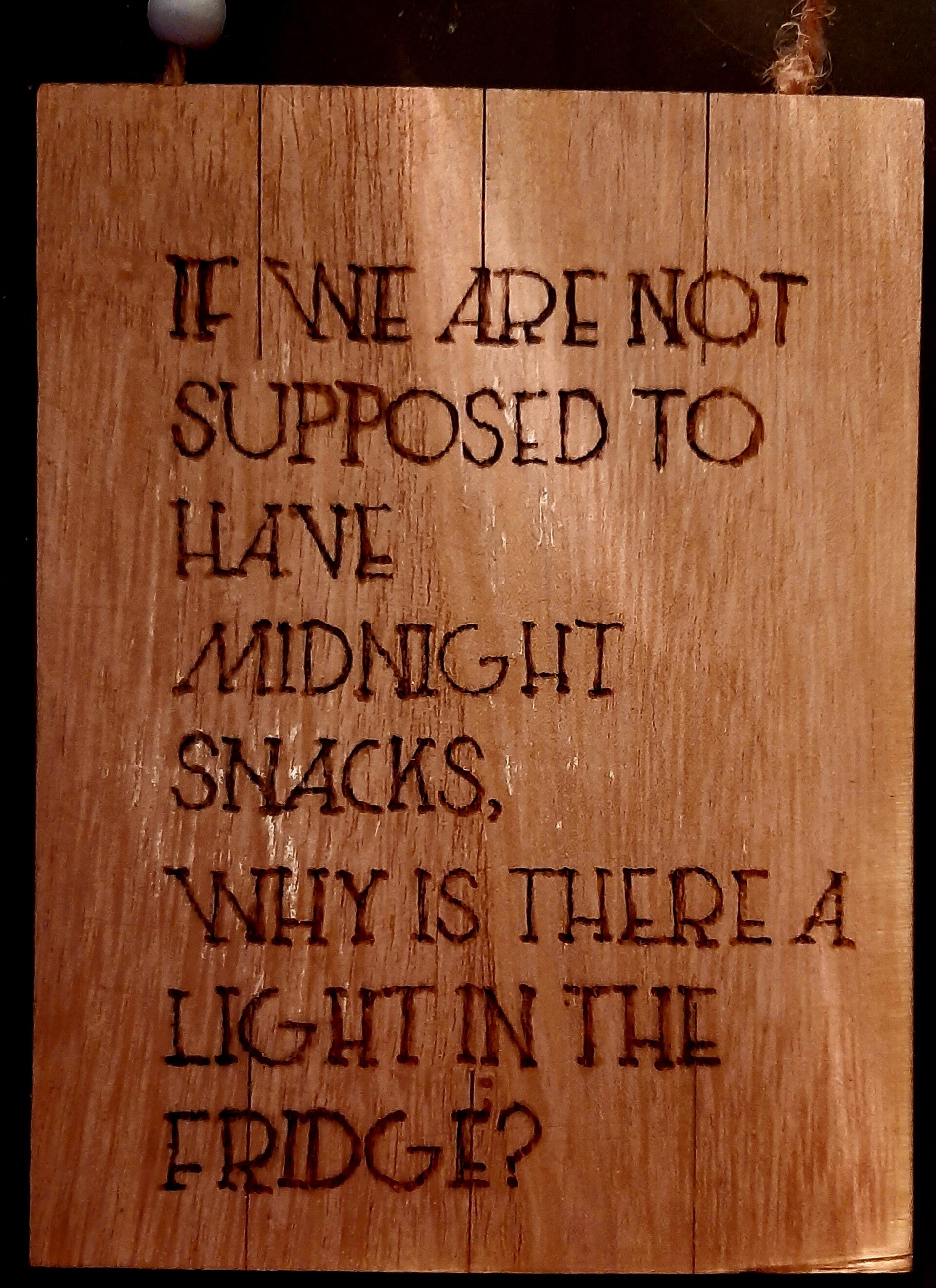 Grappig tekstbordje van hout met daarop een grappige afbeelding en/of tekst gebrand. Het bordje is voorzien van een ophangtouwtje