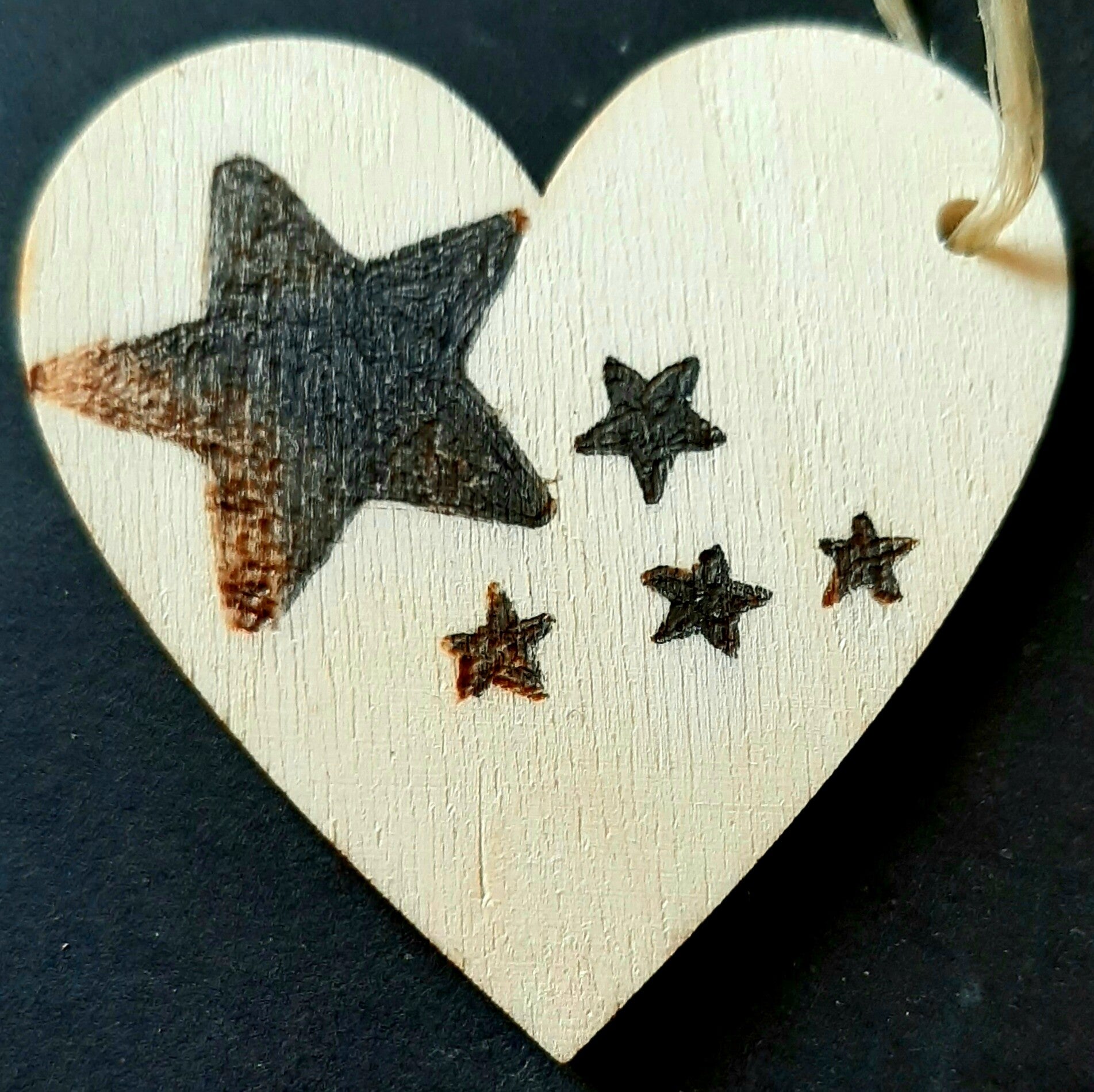 Kadolabel van hout, met daarop een toepasselijke tekst en/of afbeelding gebrand.