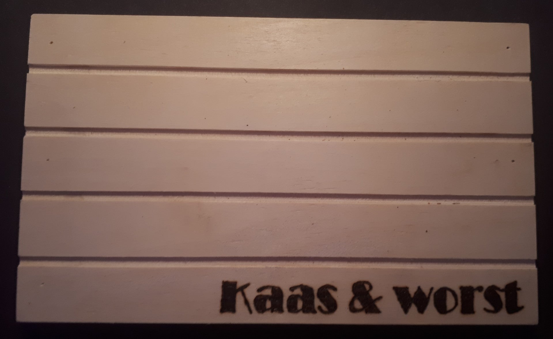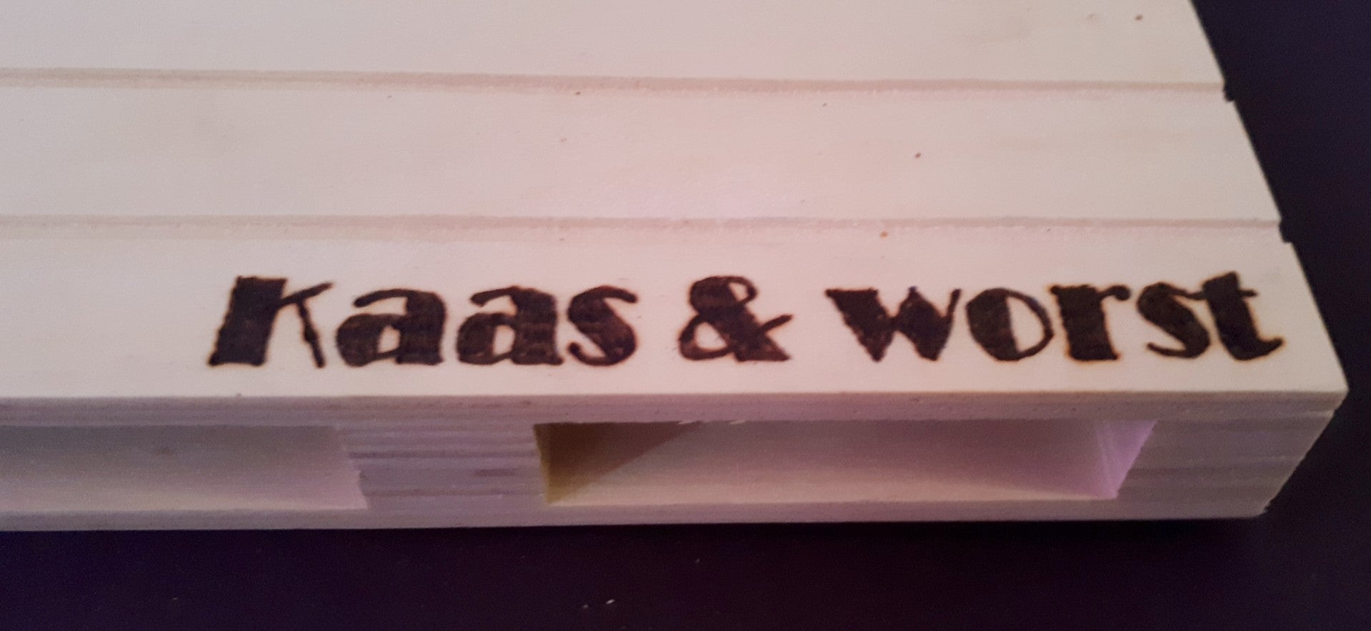 Pallet serveerplank van hout met de tekst Kaas & Worst.