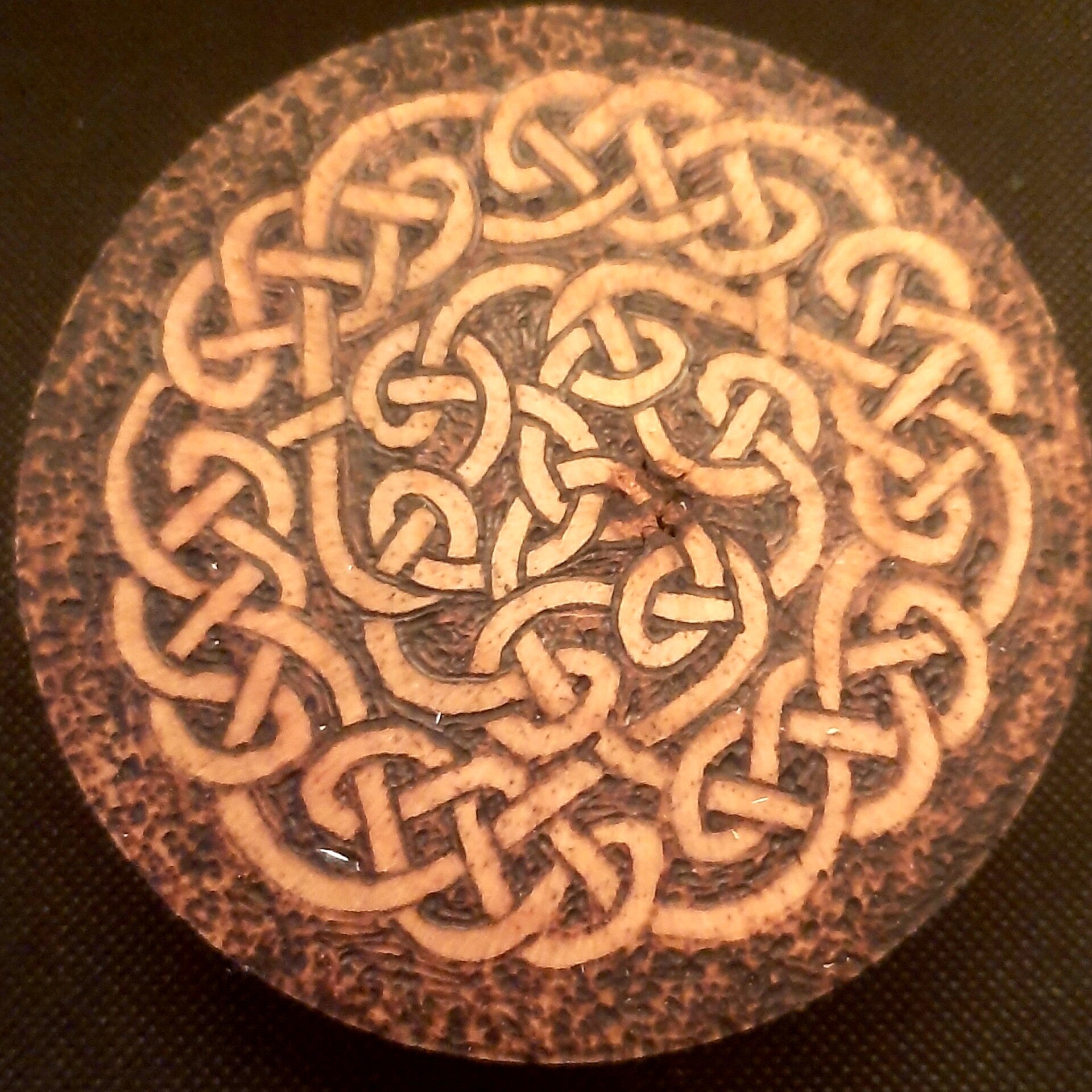 Grote robuuste wandhaak/knop van teakhout met daarop een Keltische knoop gebrand. Te gebruiken om bijvoorbeeld je jas aan te hangen, of de hondenriem enz.